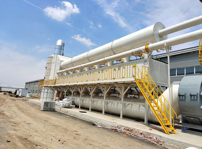 废气污染源处加装收集罩,通过收集管道和引风机进入喷淋洗涤塔、除雾器、干式预处理、催化燃烧等处理系统。通过喷淋洗涤塔对废气进行水洗降温,在水洗降温的过程中同时对废气进行过滤处理,降温后的气体进入除雾器进行除雾处理,后进入干式预处理进行再次过滤(对后面的设备起到保护作用),之后采用活性炭吸附主要是吸附去除VOCs,且起到富集的作用使其满足催化氧化所需浓度条件。脱附过程是为了使吸附在活性炭上的VOCs分子脱离活性炭而进入到后端催化氧化工艺进行去除,从而延长活性炭的使用寿命。CO催化氧化:经过前一阶段从活性炭上脱附下来的VOCs分子经过催化氧化彻底转变成干净的CO2和H2O。