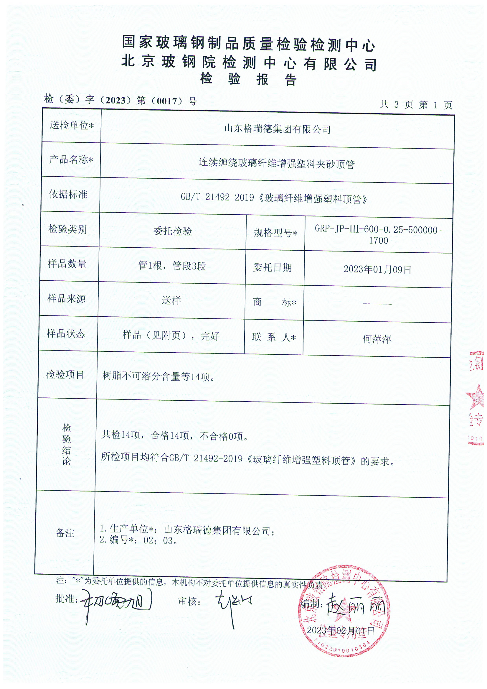 连续缠绕玻璃纤维增强塑料夹砂顶管