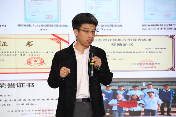 集团信息化设计中心主任谈庆松作为项目汇报人,利用有限的时间清晰、完整、流畅地阐述了集团人力资源管理信息化历程及标签化创新思路,并精确、沉稳地回答了评委提问,最终喜获创新大赛唯一的一等奖。