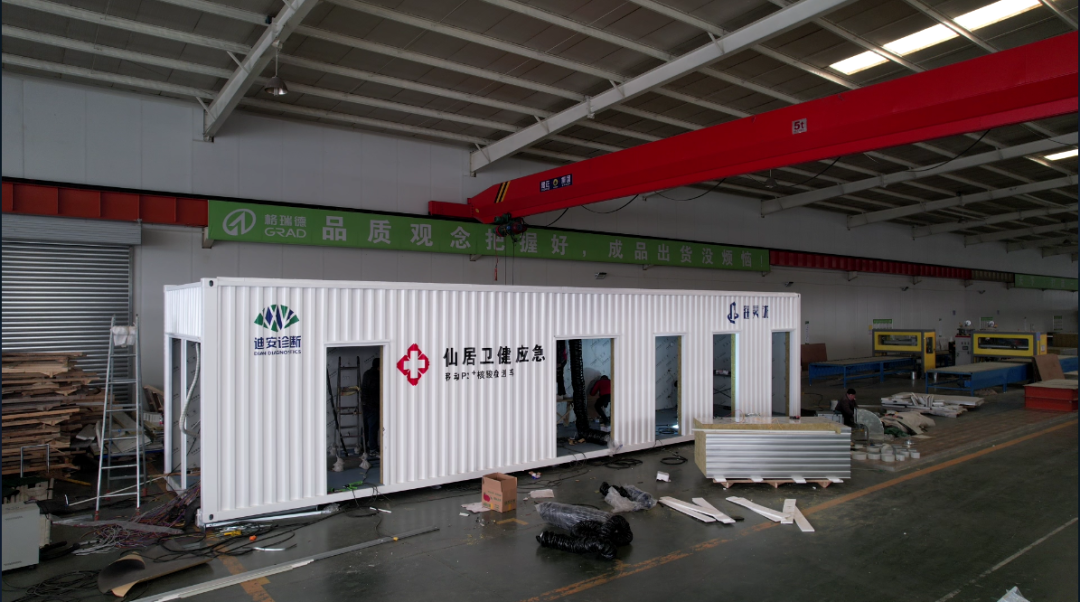 2022年初,格瑞德集团接到一批特殊的订单:10个方舱实验室。临近年关,时间紧任务重,集团积极协调调度,加班加点赶生产,最终在正月28凌晨,将前期所需的4个方舱实验室发至浙江、北京、河北等地,主要采用集团净化钢质门、净化彩钢板等产品,并负责整体的安装工作。