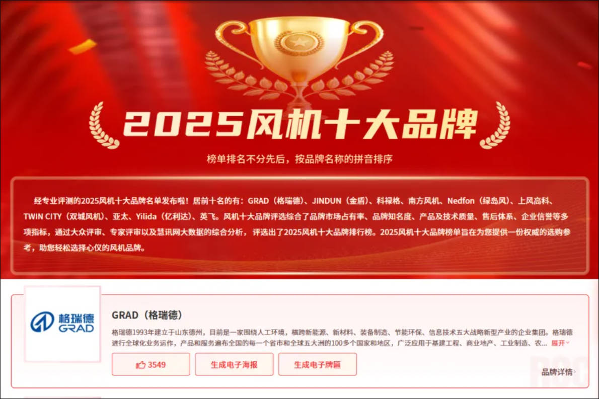 近日,RCC瑞达恒正式发布2025中国风机十大品牌榜单,格瑞德集团凭借卓越的综合实力,强势上榜!这一荣誉不仅是对品牌深耕行业的肯定,更是中国智造迈向高质量发展的生动见证!