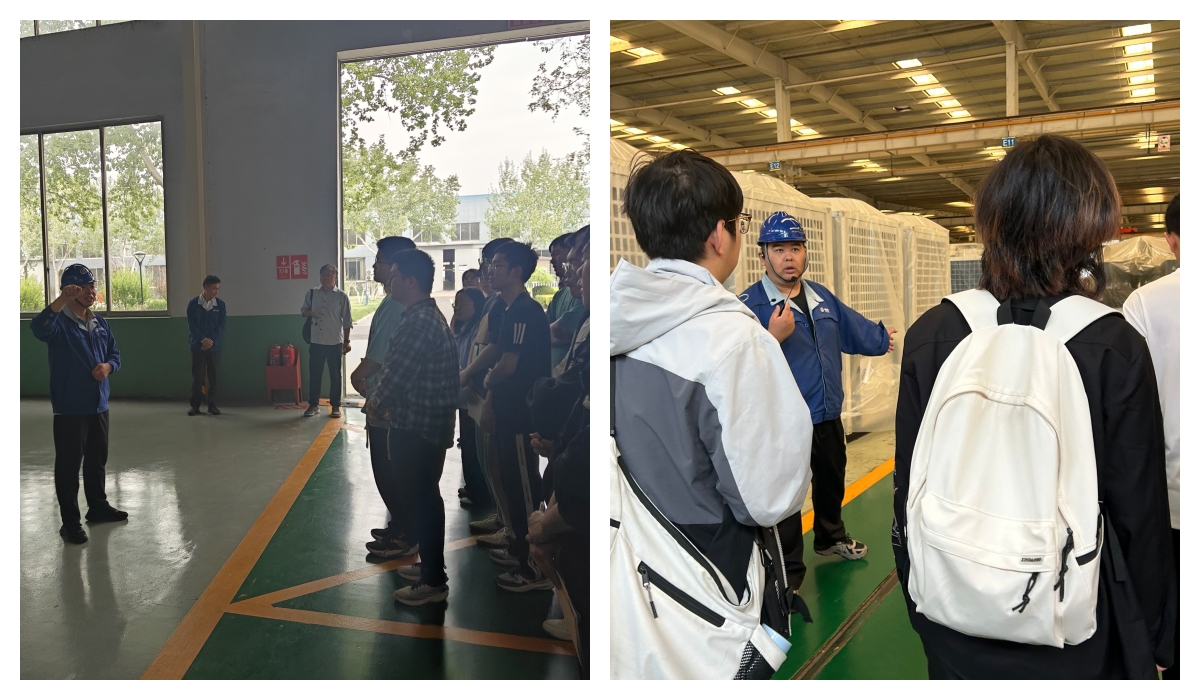 在能源工程公司,单元机产品线总经理白俊明、生产部李雪峰、风冷技术部邓范毅等技术人员不仅为学生们详细讲解了产品理论知识,还认真开展了参观前的安全教育,随后带领学生们走进车间,进行实地参观学习。
