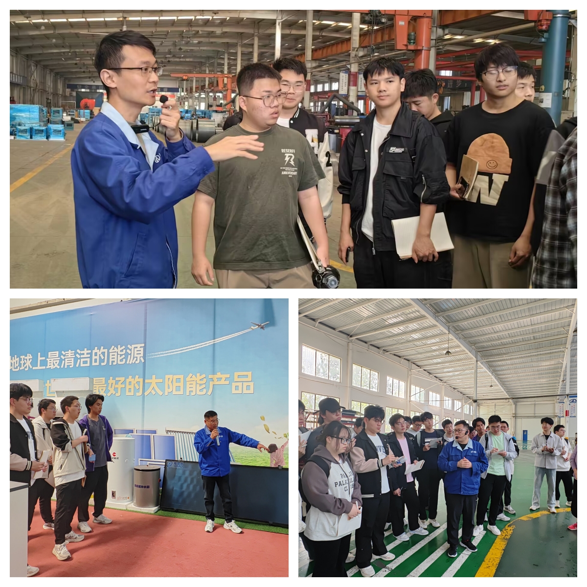 在后续的实习安排中,河北工业大学师生一行分别前往格瑞德洁净空调工程公司、能源工程公司、通风人防工程公司以及太阳能分公司进行参观学习。每到一处,都有专业的技术人员为学生们进行产品理论知识的讲解,并带领他们深入车间生产线,实地感受产品的生产过程。