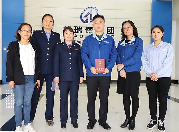 9月28日,德州市德城区工商局相关领导和德城区电视台记者来我集团座谈并颁发荣誉证书。集团副总裁王志军、董事长助理白晓云进行接洽。集团副总裁王志军接受德城区电视台记者采访,将在德城区新闻联播中宣传播放。