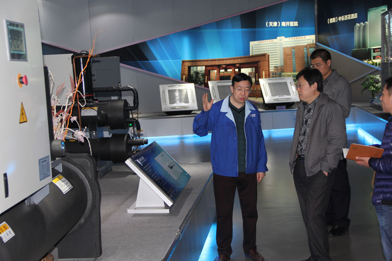集团行政总监马利忠对王局长一行进行了热情接待,随后带领王局长一行参观了集团展厅,对公司主要产品进行了讲解,并陪同领导一行参观了空调器、主机等主要车间。