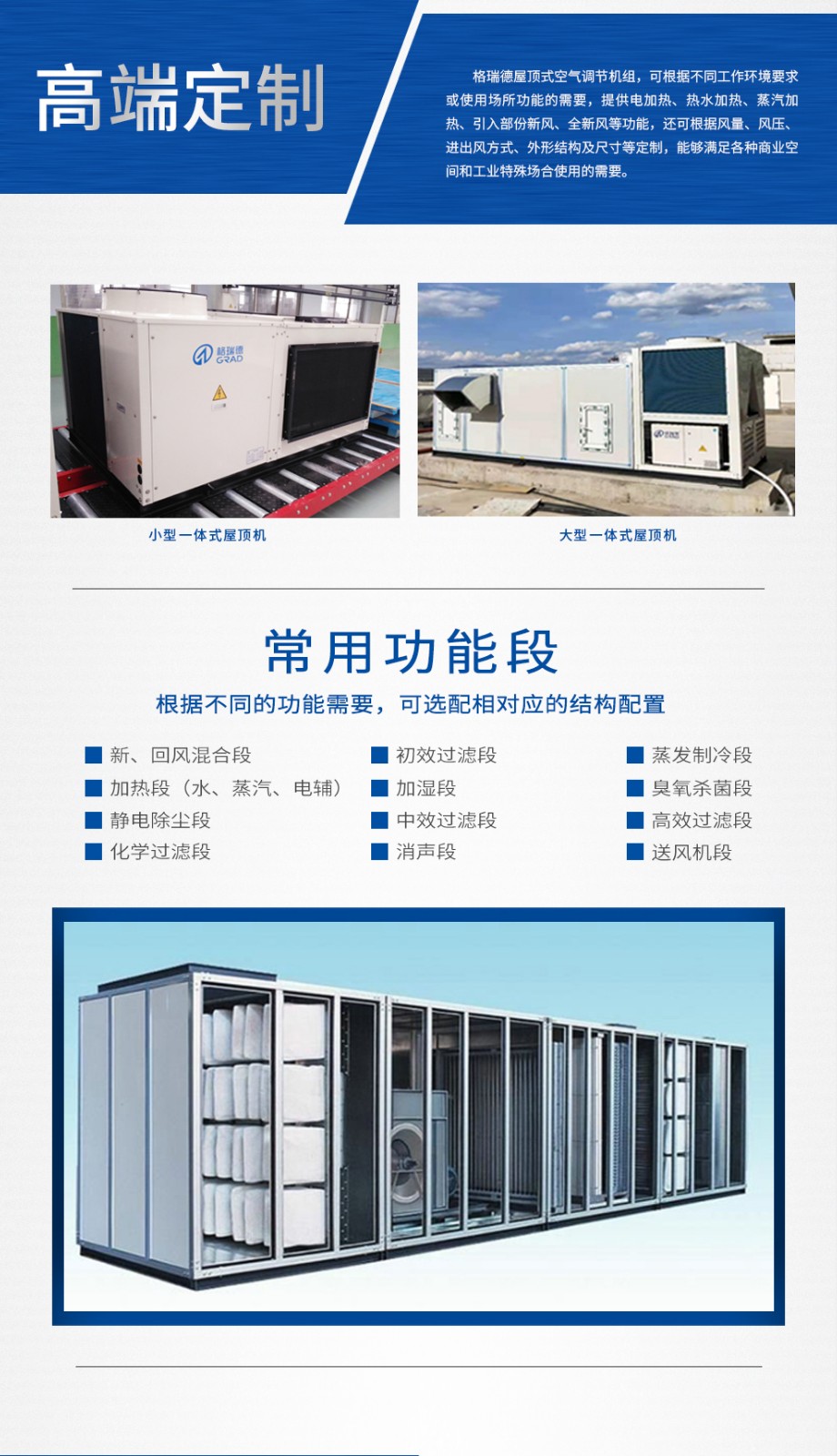 格瑞德致力于让人工环境更美好,通过打造空调工程、通风人防、复合材料、环保工程领域的全过程解决方案来满足客户需求,格瑞德构建了包括品牌规划、系统设计、技术开发、产品制造、整体施工、维护服务、检测认证、人才交流、产业集群的全生命周期产业链和产业生态。