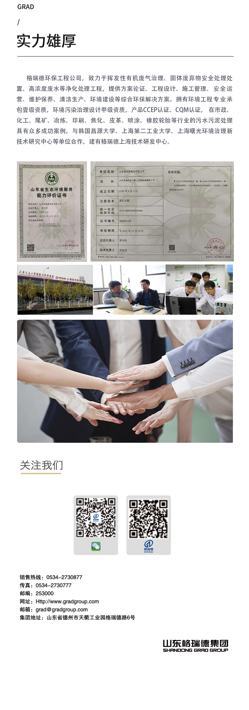 格瑞德集团致力于挥发性有机废气治理、固体废弃物安全处理处置、高浓度废水等净化处理工程,提供方案论证、工程设计、施工管理、安全运营、维护保养、清洁生产、环境建设等综合环保解决方案。