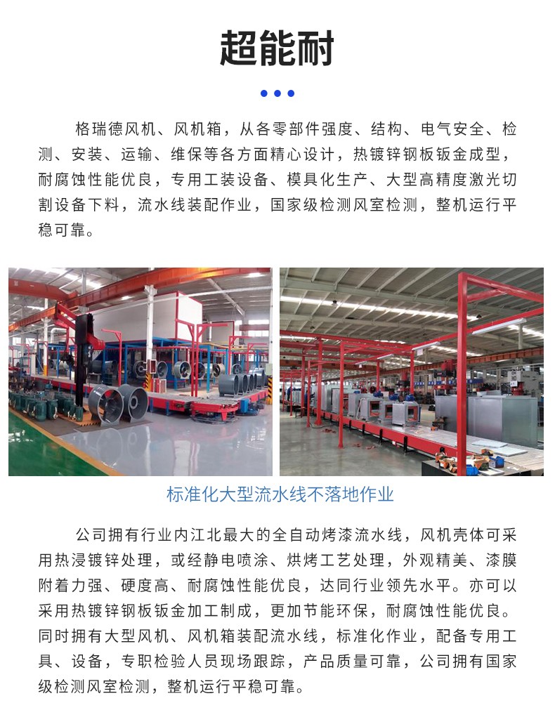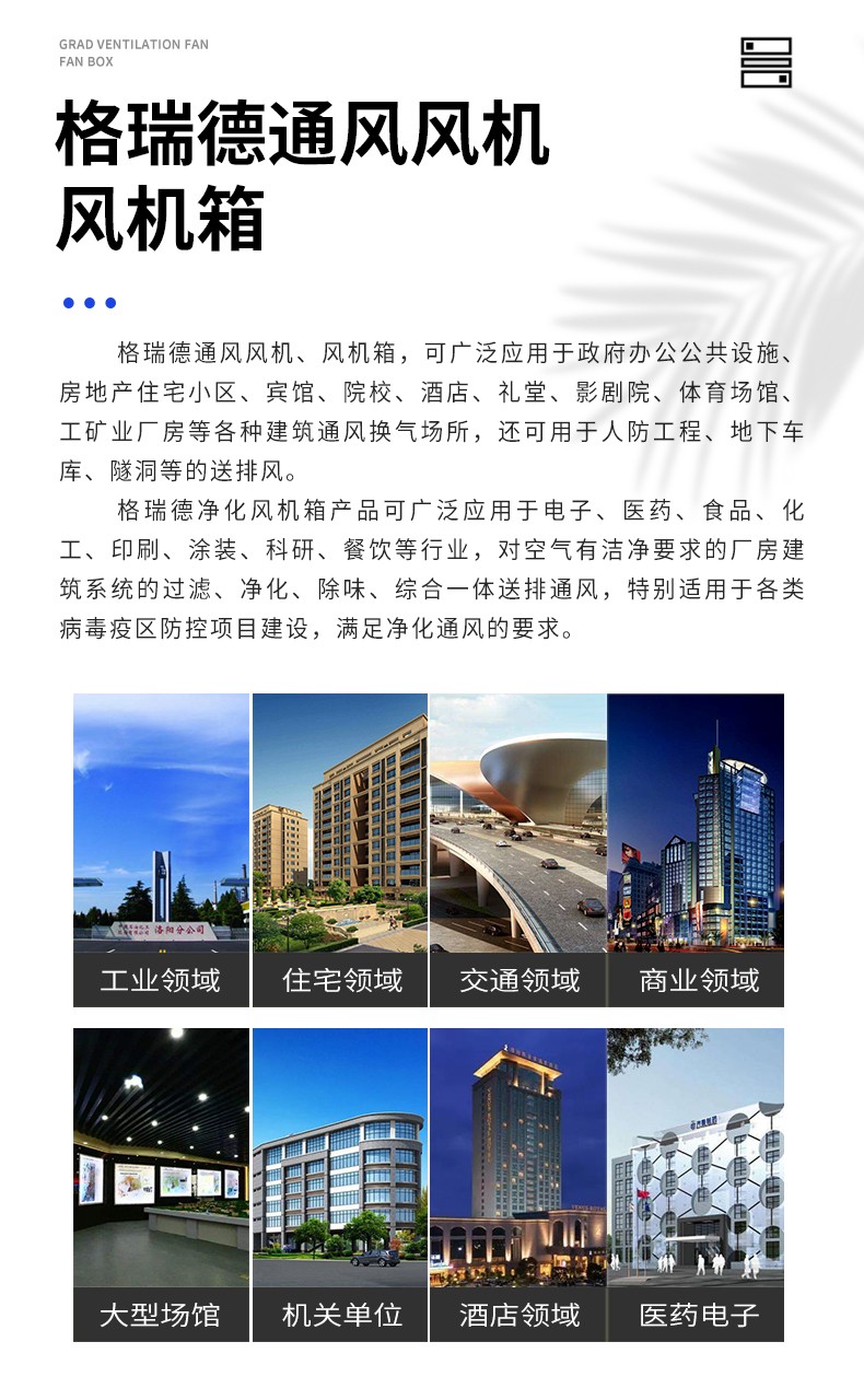 格瑞德致力于让人工环境更美好,通过打造空调工程、通风人防、复合材料、环保工程领域的全过程解决方案来满足客户需求,格瑞德构建了包括品牌规划、系统设计、技术开发、产品制造、整体施工、维护服务、检测认证、人才交流、产业集群的全生命周期产业链和产业生态。