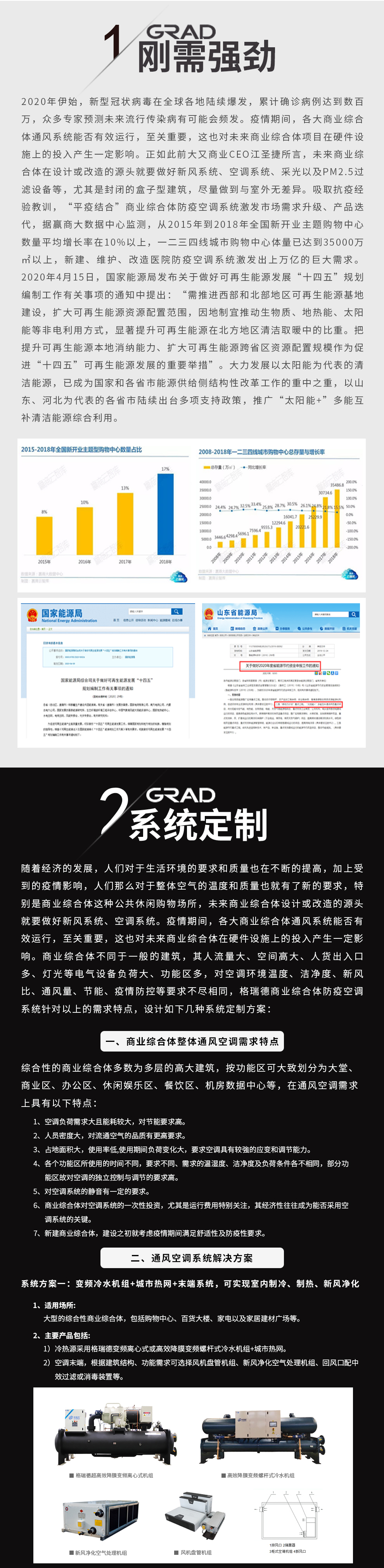 格瑞德致力于让人工环境更美好,通过打造空调工程、通风人防、复合材料、环保工程领域的全过程解决方案来满足客户需求,格瑞德构建了包括品牌规划、系统设计、技术开发、产品制造、整体施工、维护服务、检测认证、人才交流、产业集群的全生命周期产业链和产业生态。