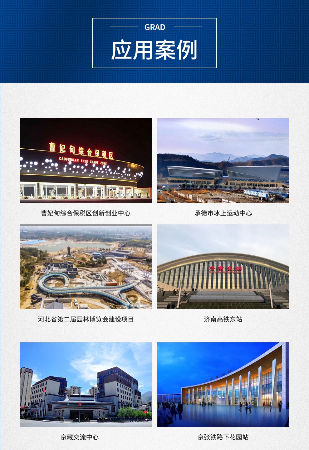 格瑞德进行全球化业务运作,产品和服务遍布全国的每一个省市和全球五大洲的100多个国家和地区,广泛应用于基建工程、商业地产、工业制造、农业开发、电子信息、车辆工程、环保处理、医药净化、海洋工程、轨道交通等领域。格瑞德从业人员过万人,在山东、贵州、四川、新疆、内蒙等地建有生产基地,在上海、北京、济南、兰州以及美国洛杉矶建有研发中心。