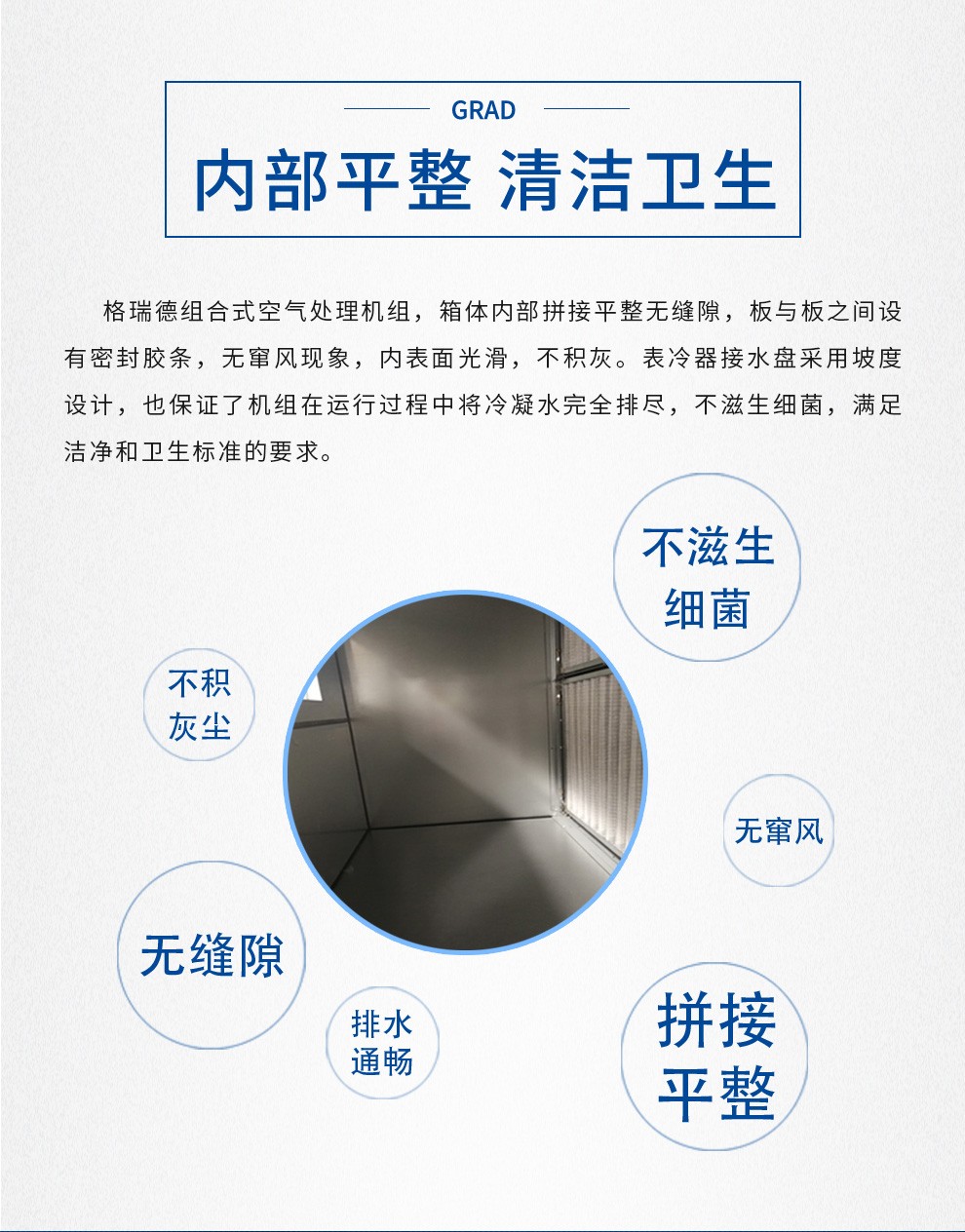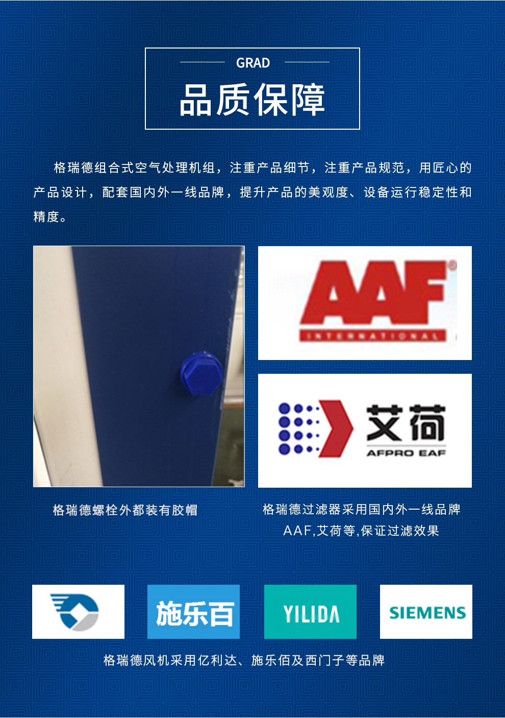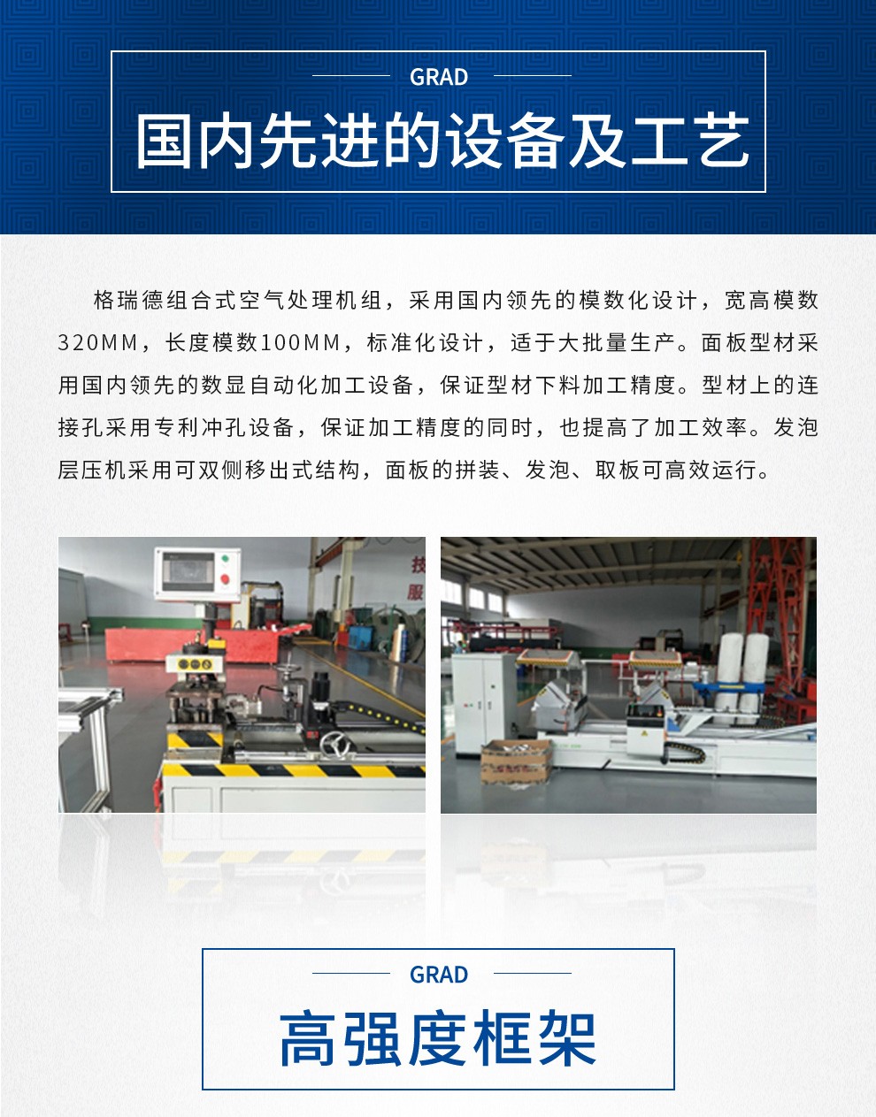 格瑞德致力于让人工环境更美好,通过打造空调工程、通风人防、复合材料、环保工程领域的全过程解决方案来满足客户需求,格瑞德构建了包括品牌规划、系统设计、技术开发、产品制造、整体施工、维护服务、检测认证、人才交流、产业集群的全生命周期产业链和产业生态。